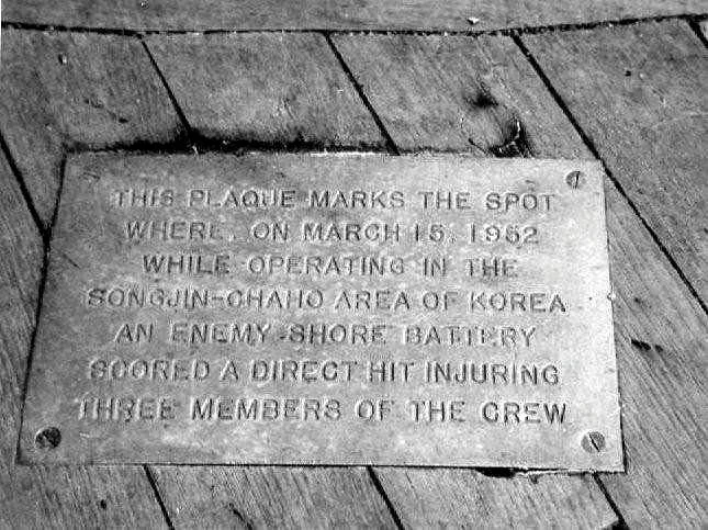 This plaque was placed over the spot where the ship was hit on March 15, 1952.