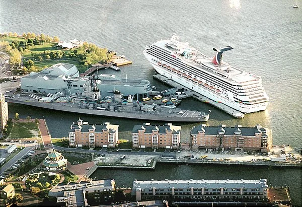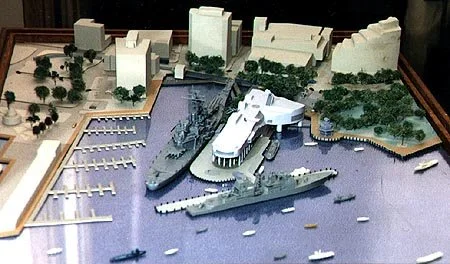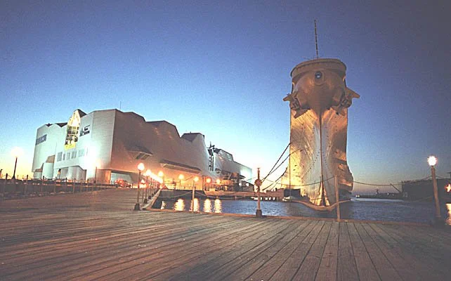 On April 16th, 2001, the USS WISCONSIN, and the National Maritime Center-Nauticus celebrated their Grand Re-Opening. The following photos show the completed project and a new look for Nauticus as Cruise ships, on a limited schedule, now leave and return from The National Maritime Center-Nauticus.