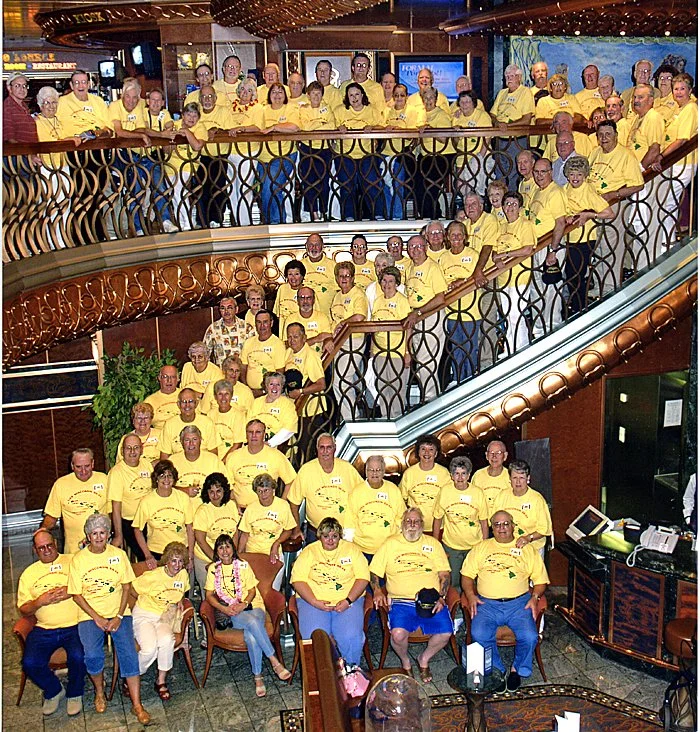For this cruise we all wore yellow t-shirts, compliments of the Cruise Connection. Of course we took a group photo, see photo #143 compliments of our Wisconsin Association. Our cocktail party was hosted by Carnival Cruise Lines.